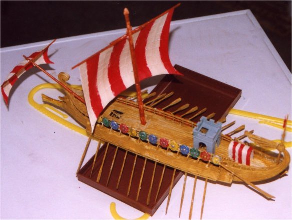 Roman WarshipThis is the sort of warship that was the backbone of the Roman fleet in the time of Julius Caeser. It would also have made up the fleets that engaged each other when Octavius Caeser went after Anthony and Cleopatra.